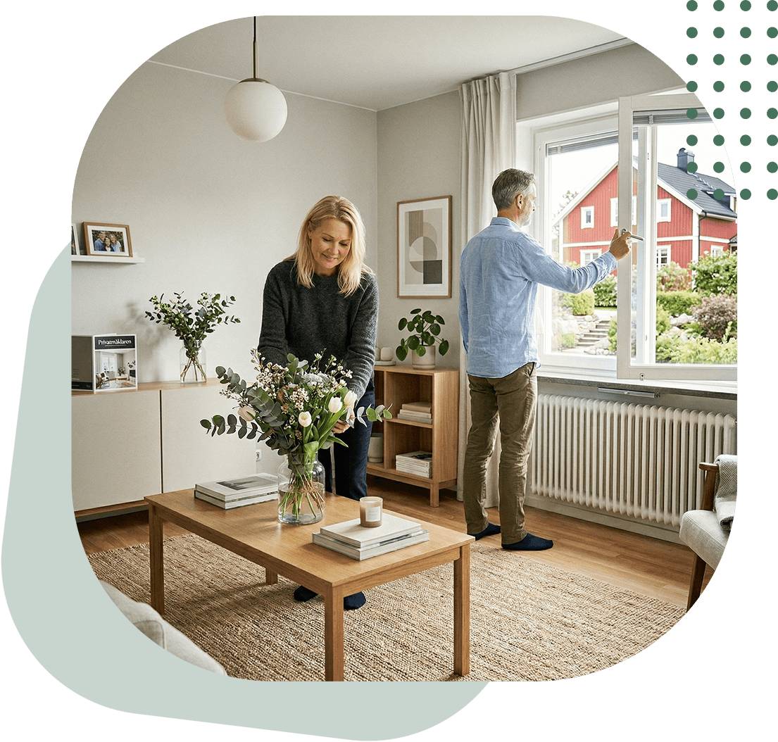 När du säljer privat med Privatmäklaren gör du mer själv av det du faktiskt är bäst lämpad för – du kan din bostad, du håller visningarna och du har kontroll över försäljningen. Samtidigt tar en registrerad fastighetsmäklare hand om annons, budgivning, juridik och tillträde. Det gör tjänsten både smartare, mer effektiv och billigare än traditionell mäklarförsäljning.